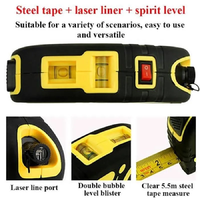 - Fonctions Polyvalentes : Niveau laser, règle métrique standard, ruban à mesurer réglé de 8 pieds combiné en un seul outil, économisez de l’espace dans votre boîte à outils Ruban de mesure de 8 pieds, comprend des mesures linéaires de précision métriques et impériales, avec des graduations jusqu’à 1/32 « et 1 mm.