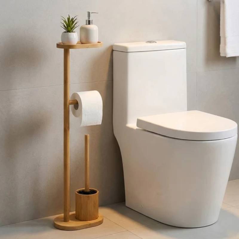 🌿 Fabriqué en bambou naturel, ce support est résistant à l’humidité, écologique et durable. Son design moderne s’intègre parfaitement dans tous les styles de salles de bain.