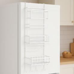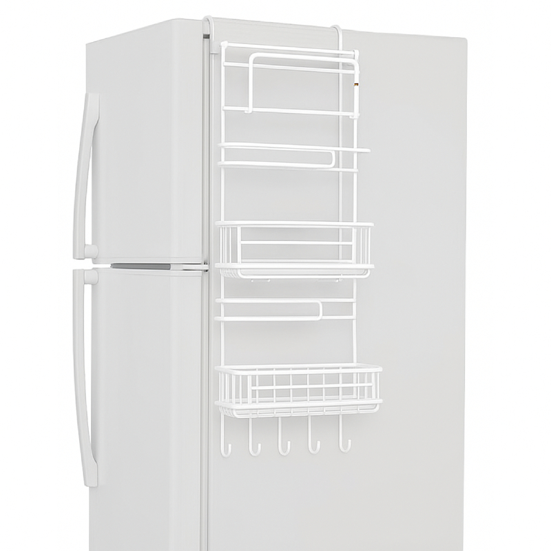Fabriqué à partir de matériaux durables et résistants, il supporte l’humidité et la fréquence d’utilisation dans la cuisine ou le réfrigérateur. Son installation est simple : il suffit de fixer les crochets adhésifs en haut du réfrigérateur, et le tour est joué ! Son design compact et moderne s’intègre parfaitement à tout style de cuisine.