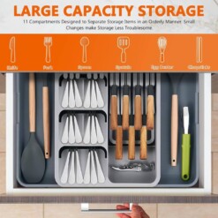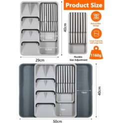 Optimisez l’espace de votre cuisine avec cet organisateur d’ustensiles avec porte-couteaux 8 compartiments réglables, une solution pratique et élégante pour garder vos tiroirs parfaitement ordonnés.