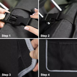 Pas besoin d’outils : en moins d’une minute, vous pouvez fixer l’organisateur sur le siège arrière ou dans le coffre grâce à ses boucles latérales à dégagement rapide. Il reste solidement en place, même lors de déplacements mouvementés.