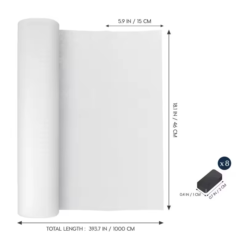 Dimensions : Largeur de 46 cm, longueur de 5 m ou 10 m selon l’option choisie, permettant de couvrir plusieurs utilisations.
