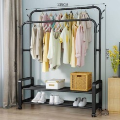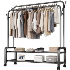 Organisez facilement vos vêtements grâce à cette penderie métallique pratique et élégante. Dotée de barres de suspension doubles, d’une étagère pour chaussures et de roues, elle offre un grand espace de rangement tout en restant facile à déplacer dans la maison ou au bureau.