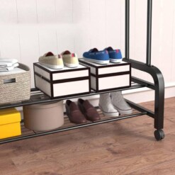 Penderie porte manteau vêtements et chaussures métallique avec roues