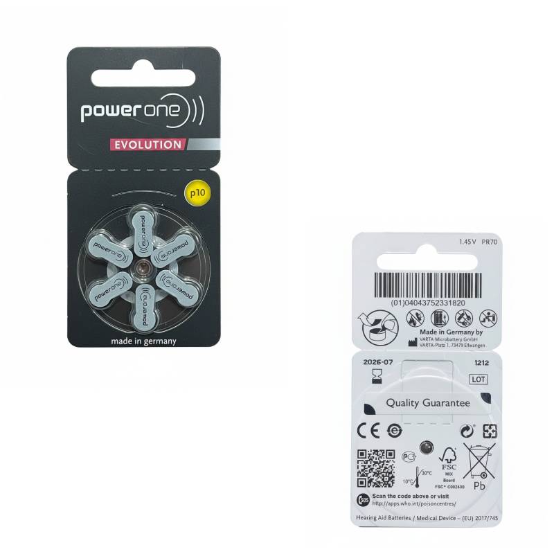 Les piles auditives p10 POWER ONE sont conçues pour offrir une alimentation fiable et durable aux appareils auditifs. Fabriquées en Allemagne, elles utilisent la technologie Zinc-Air, reconnue pour fournir une puissance stable, une excellente autonomie et une performance constante tout au long de leur utilisation.