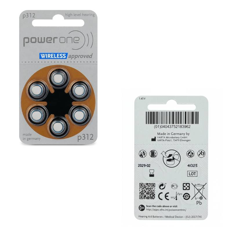 Les piles auditives p312 POWER ONE sont conçues pour offrir une alimentation fiable et durable aux appareils auditifs. Fabriquées en Allemagne, elles utilisent la technologie Zinc Air, reconnue pour fournir une puissance stable, une excellente autonomie et une performance constante tout au long de leur utilisation.