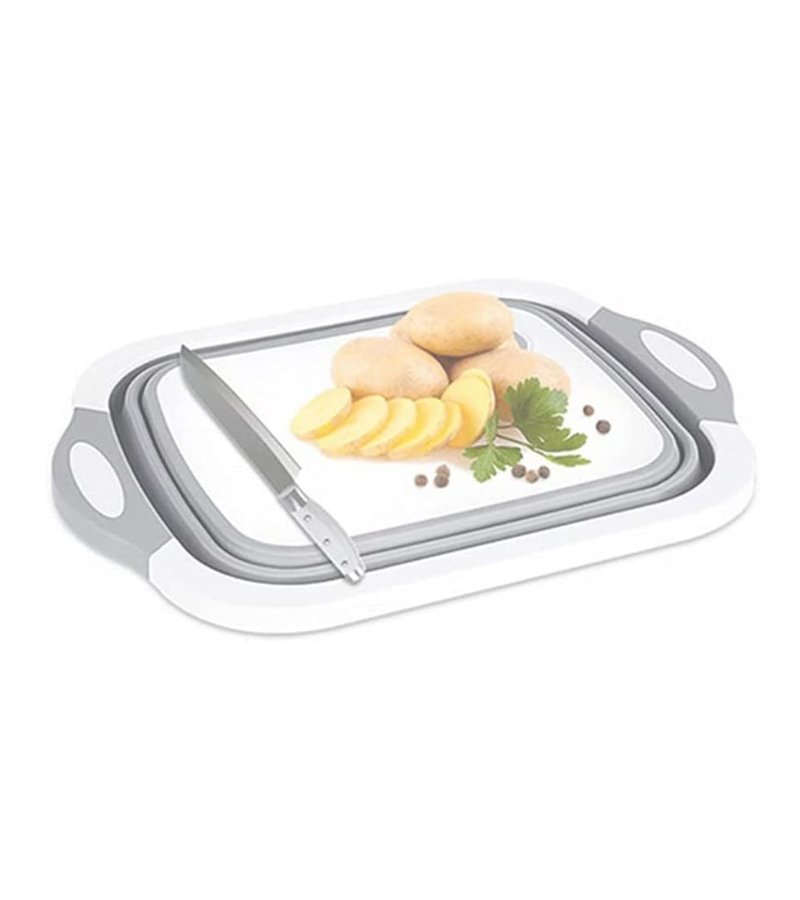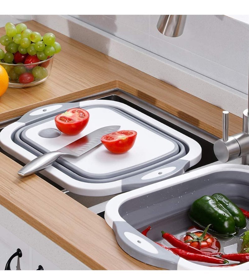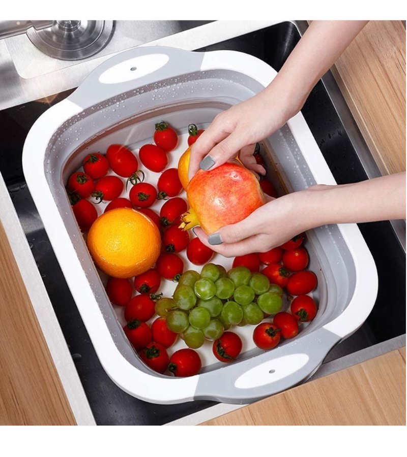 Planche à découper pliable, 3 en 1 planche à découper pliable de la planche à découper en silicone baignoire en silicone baignoire de baignoire, lavage et vidange légumes fruits panier de stockage de lavabo pour cuisine camping pique-nique barbecue BBQ