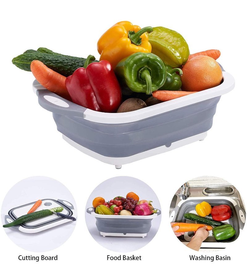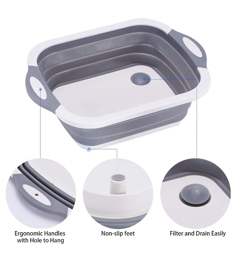 – Peut être utilisé comme une planche à découper après le pliage ou le panier de lavage de légumes et du panier de vidange après ouverture.