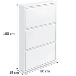 - Grand meuble à chaussures mural en métal, 3 tiroirs, dimensions 100cm x 80cm x 15cm.