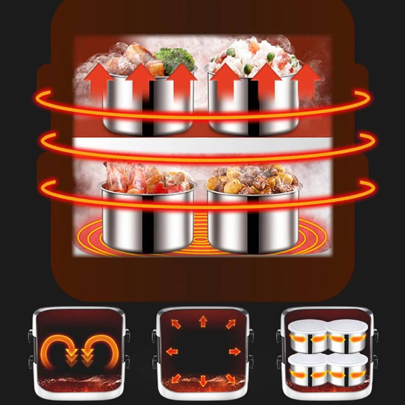 Grâce à sa puissance élevée de 200W, il chauffe rapidement et uniformément, agissant comme un mini micro-ondes portable, parfait pour le bureau, l’école, les voyages ou les déplacements professionnels. Il peut également être utilisé pour réchauffer les plats ou cuire du riz, offrant une vraie alternative aux repas rapides et peu sains.