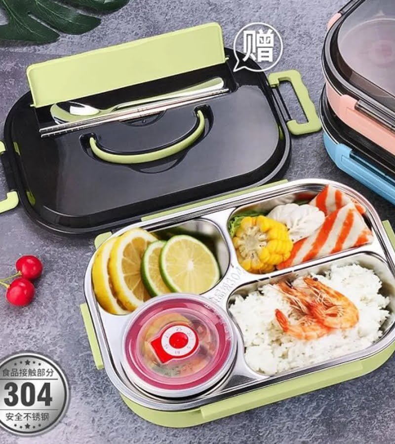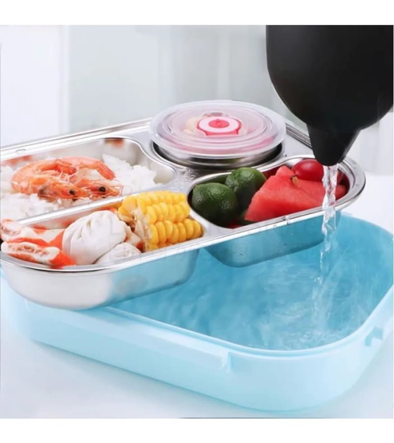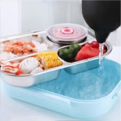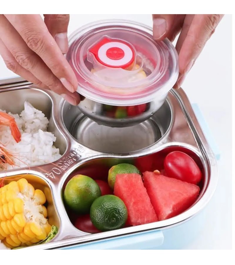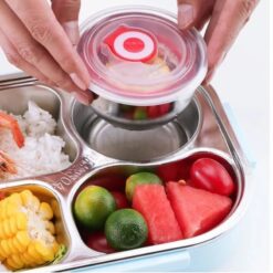 Lunch box de bureau plateau en acier inoxydable 5 compartiments avec bol pour soupe emballé en plastique à l’extérieur
