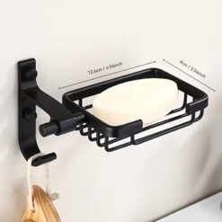 Son format compact (9 à 12 cm) est idéal pour accueillir la plupart des savons solides, tandis que le crochet intégré permet de suspendre facilement une éponge, un gant de toilette, un rasoir ou une petite serviette, offrant ainsi une solution 2-en-1 intelligente.