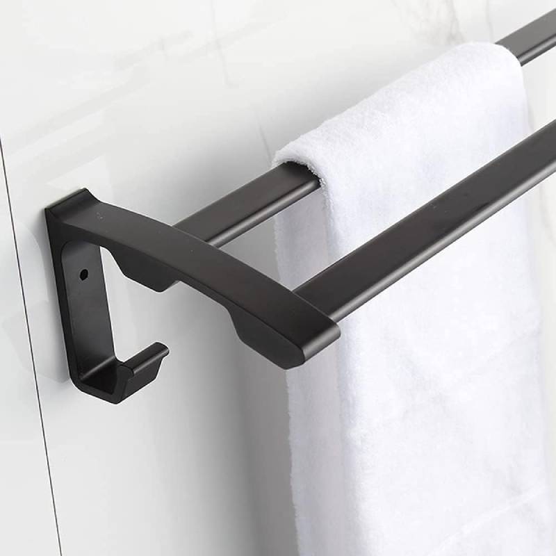 Porte serviettes double Noir en Aluminium avec 2 crochets