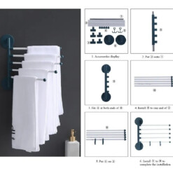 Apportez une touche de modernité et de praticité à votre salle de bain avec notre porte-serviettes rotatif. Conçu pour s’adapter à tous les styles de décoration, cet accessoire est idéal pour organiser vos serviettes et autres accessoires de bain. Sa rotation flexible facilite l’accès à vos serviettes, tout en maximisant l’espace disponible.