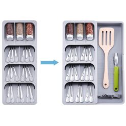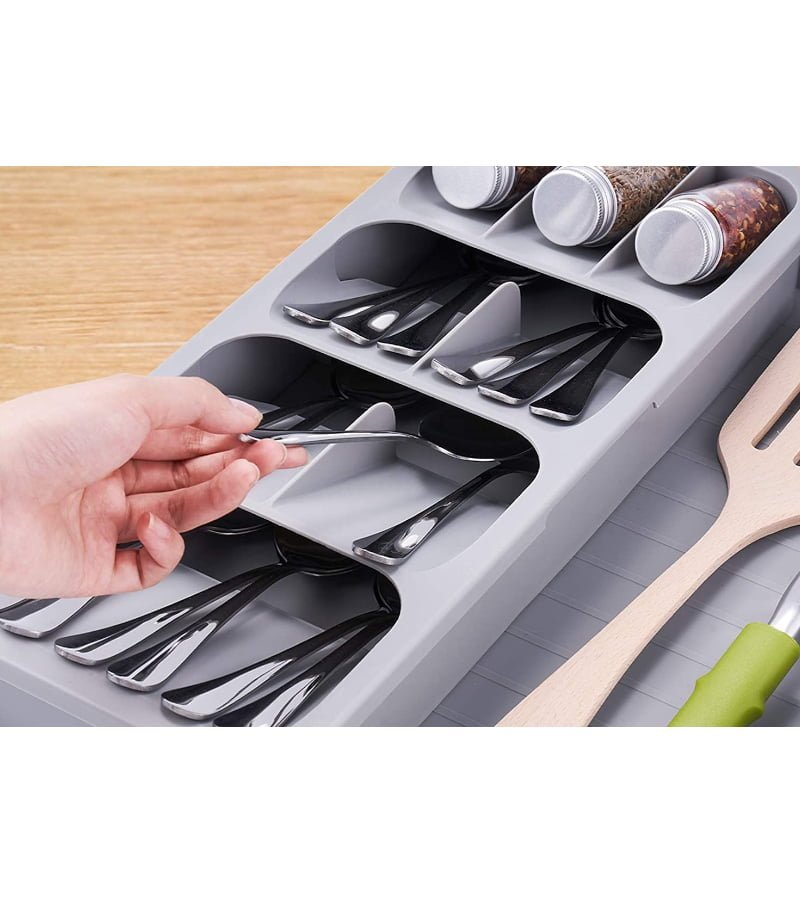 - Gain de place : 4 compartiments individuels empilés et un séparateur amovible adapté à différents ustensiles. Design unique pour maximiser votre espace de rangement disponible dans des tiroirs de taille standard.