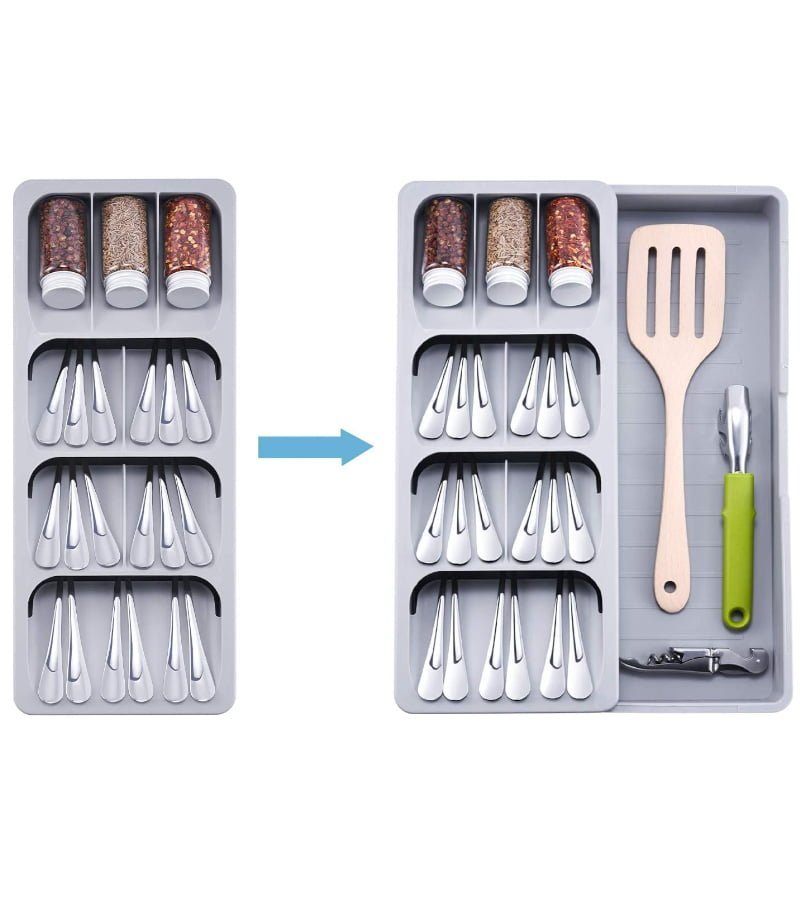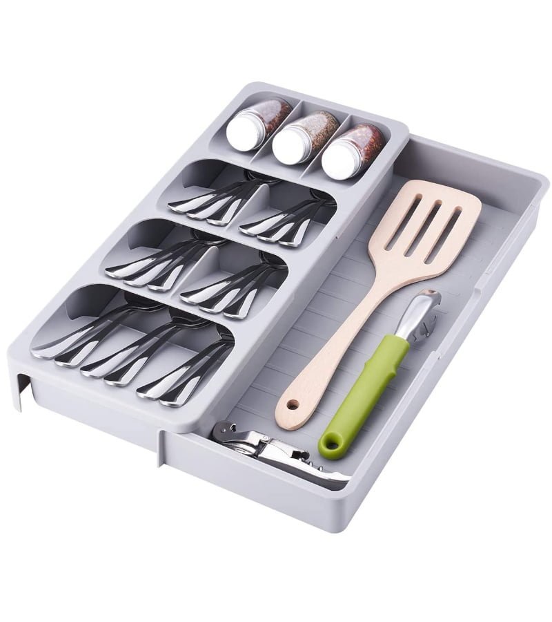 - Extensible et réglable : Tiroir à couverts amélioré, extensible de 16,3 cm à 29,5 cm de large, 45 cm de long et 5,3 cm de profondeur. Les classeurs s’ajustent à la largeur de votre tiroir pour un ajustement personnalisé instantané, s’adaptent facilement à la plupart des tiroirs de cuisine. Convient au restaurant, au bureau, à l’école, à l’extérieur, au pique-nique, au camping, au voyage et plus encore.