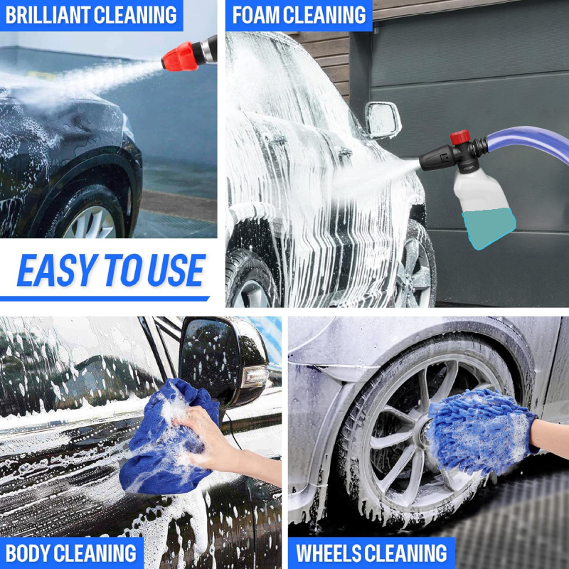 Facile à utiliser, il suffit de diluer votre solution de nettoyage, de la verser dans le réservoir, puis de connecter la buse à un tuyau haute pression. Idéal pour le nettoyage de voitures, camions, façades, toitures ou mobilier de jardin, cet outil vous fait gagner du temps et de l’effort, tout en vous offrant un résultat impeccable.