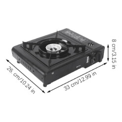 Le design comprend des pieds pliables qui facilitent le rangement et le transport, et un boîtier en plastique noir robuste pour protéger l’appareil lors de vos déplacements. Avec ses dimensions compactes de 34 x 11 x 25,5 cm, ce réchaud devient votre cuisine de campagne mobile, prête à vous accompagner dans toutes vos aventures.