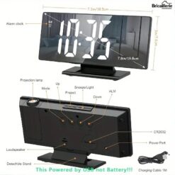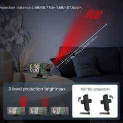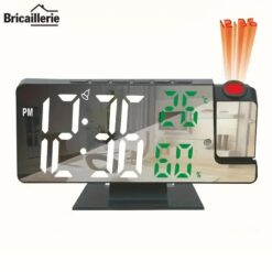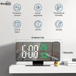 - Le produit dispose d’une fonction de projection du temps, d’un grand écran haute définition, d’une horloge numérique à LED miroir, d’un réveil et d’un miroir