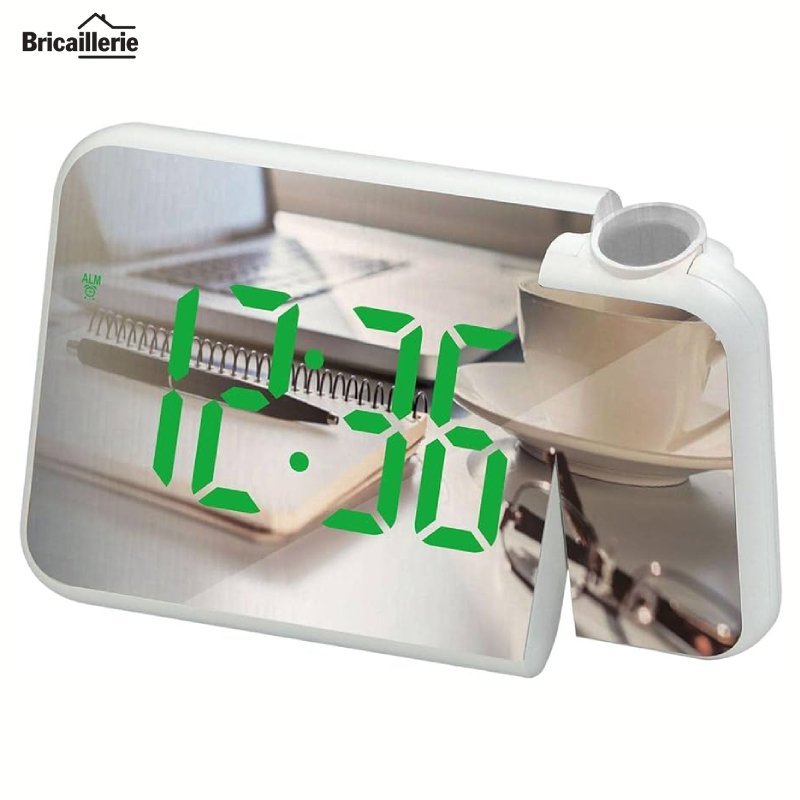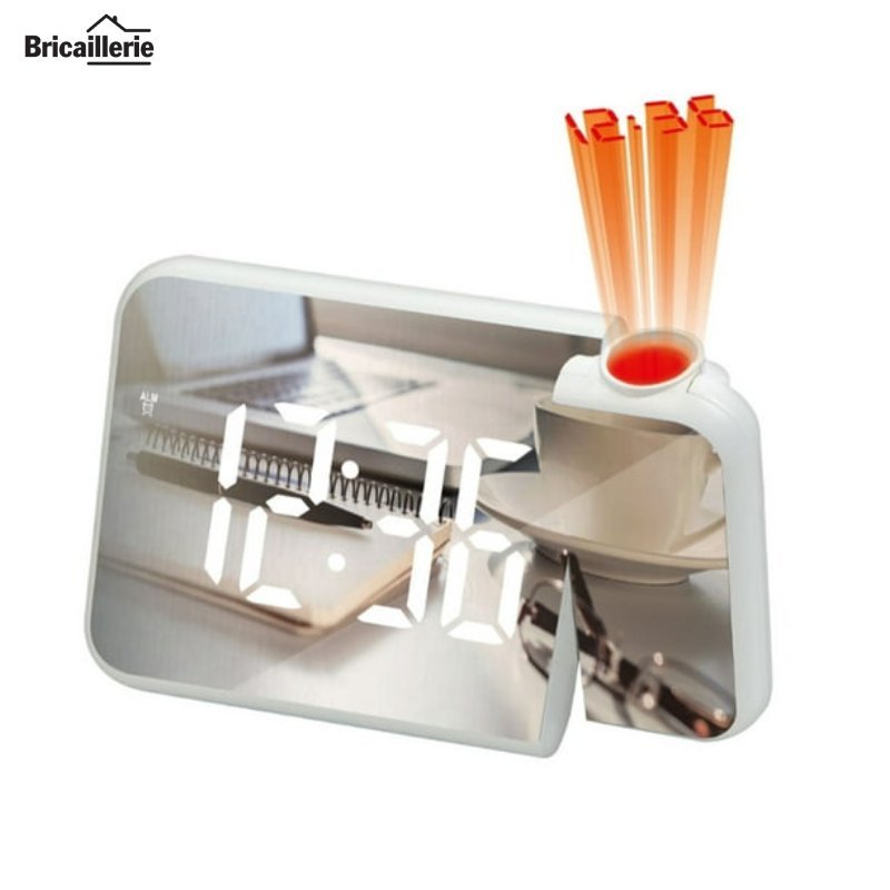 - Le produit dispose d’une fonction de projection du temps, d’un grand écran haute définition, d’une horloge numérique à LED miroir, d’un réveil et d’un miroir