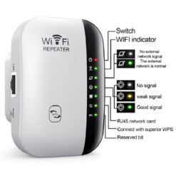 Améliorez la couverture et la stabilité de votre réseau Wi-Fi avec le répéteur sans fil, un amplificateur de signal performant offrant une vitesse jusqu’à 300 Mbps. Idéal pour étendre votre connexion Internet dans toute la maison ou au bureau, ce routeur longue portée assure une diffusion fiable du signal Wi-Fi sur une distance pouvant atteindre 100 mètres.