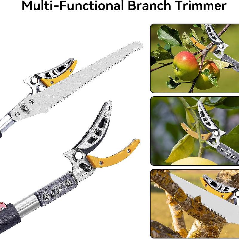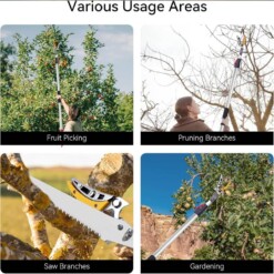 Équipé d’une lame de scie 12″ en acier SK-5, reconnue pour sa robustesse et son tranchant durable, cet outil coupe efficacement aussi bien les petites branches que les branches plus épaisses. Son design multifonction permet à la fois la taille des arbres de jardin et la cueillette des fruits.