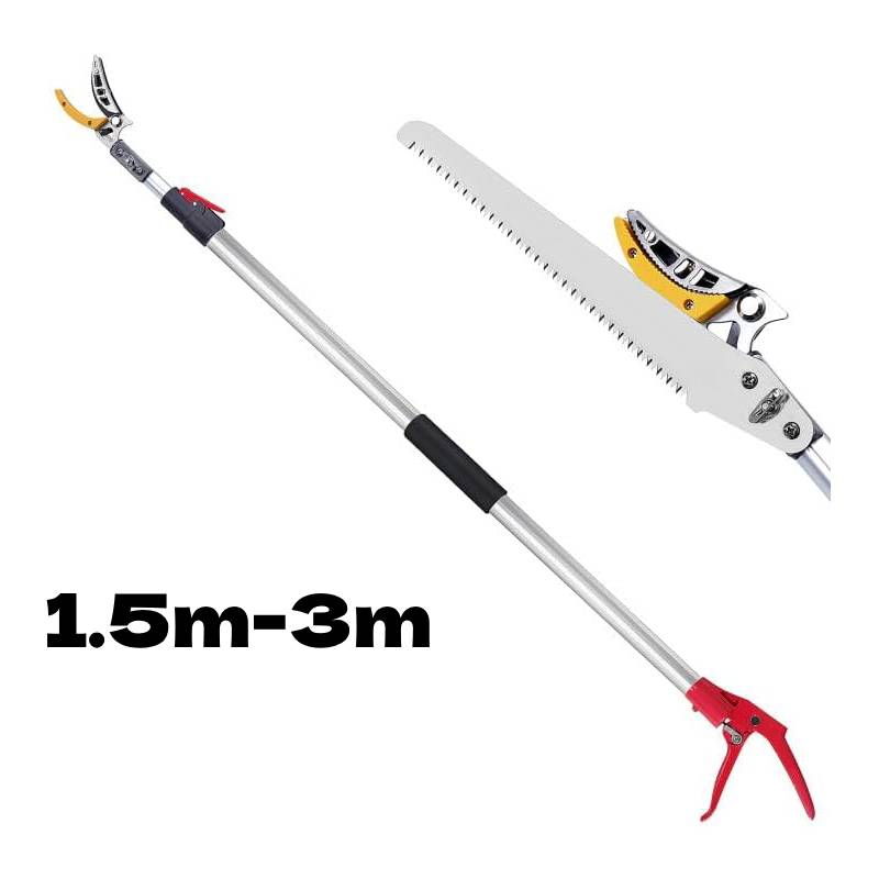 Le sécateur télescopique avec scie intégrée 3 mètres est l’outil idéal pour l’entretien des arbres et la récolte des fruits en hauteur, sans avoir besoin d’échelle. Grâce à son manche extensible jusqu’à 300 cm, il permet d’atteindre facilement les branches élevées tout en gardant les pieds au sol.
