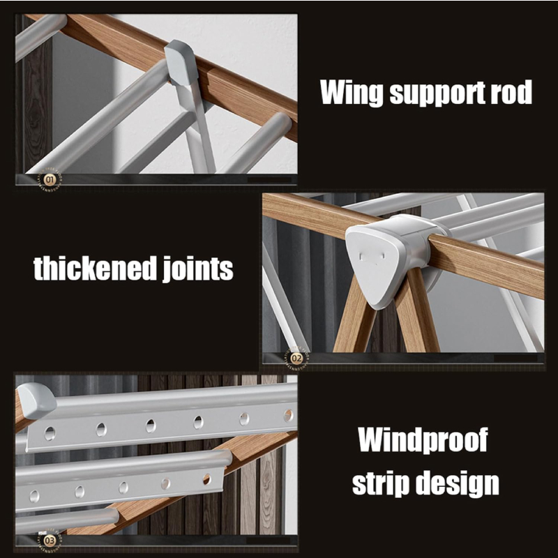 - Bandes coupe-vent intégrées pour éviter que le linge ne s’envole ou ne se déplace avec le vent.
