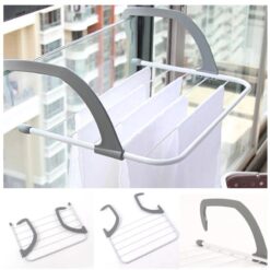 Revêtement en acier verni inoxydable évitant la rouille. À positionner sur un radiateur, le haut d’une porte ou sur un balcon. Idéal pour les petits espaces