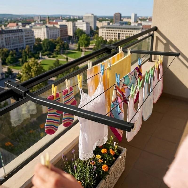 Idéal pour les appartements et les espaces réduits, il permet d’aérer et sécher votre linge naturellement tout en gardant votre balcon organisé.