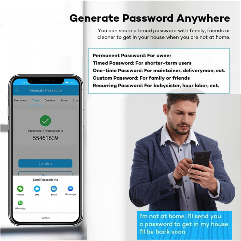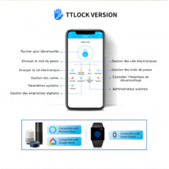 - Contrôle facile via application TTLOCK : gestion des utilisateurs, ajout/suppression des cartes.