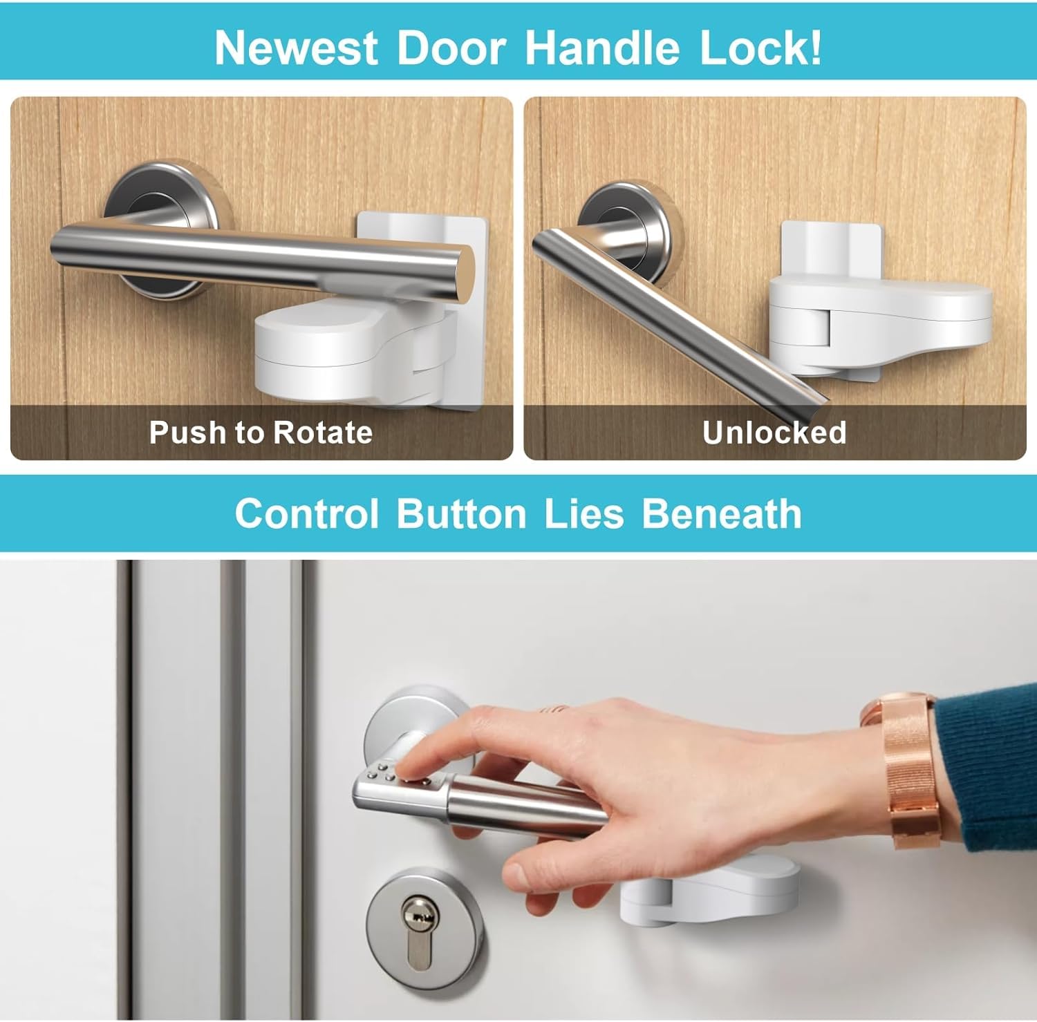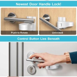 L’installation est rapide et sans effort, sans perçage ni vis. La serrure utilise un adhésif 3M haute résistance, garantissant une fixation solide et durable sur la majorité des poignées de porte standards. Une fois installée, elle crée une barrière fiable contre les petites mains curieuses.