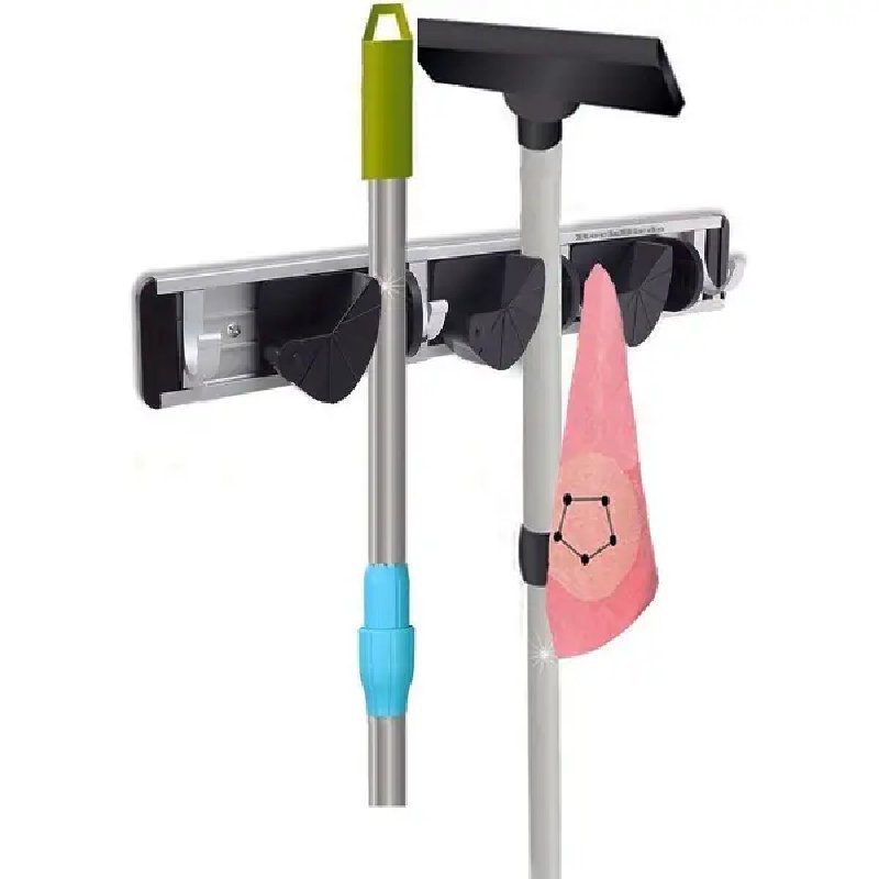 Support balais 3 compartiments et 4 crochets ajustable mural