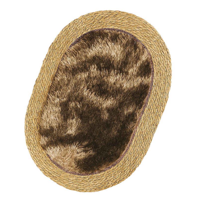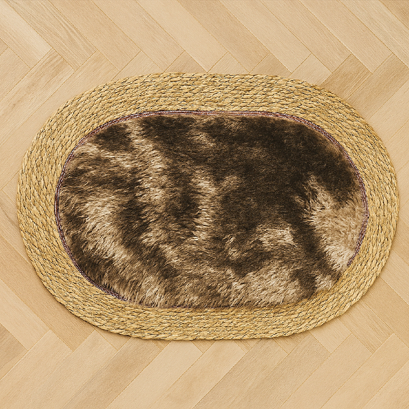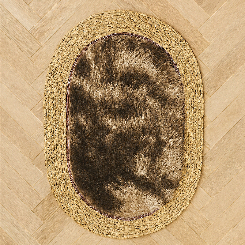 Tapis d’entrée ovale en plume – Beige avec marron