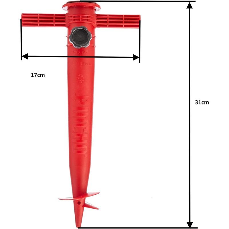 - Simple et sûr Avec un support de parasol utile, votre journée à la plage sera encore meilleure. L’ancre a une longueur totale de 370 mm. Cela facilite le perçage dans le sable ou dans le sol desserré et maintient le parasol en place même en cas de vent.