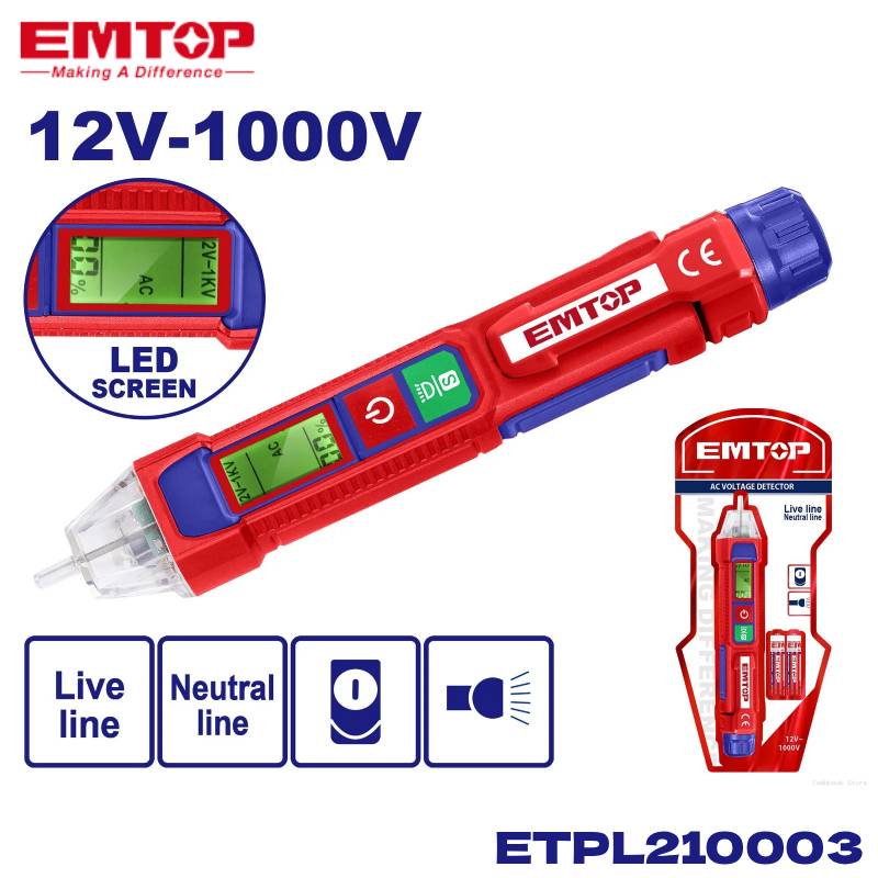 Testeur détecteur courant alternatif 12V/1000V EMTOP