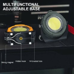 Son design étanche et robuste la rend adaptée aux conditions extérieures difficiles. La base magnétique puissante permet de la fixer facilement sur des surfaces métalliques, offrant un éclairage mains libres très pratique lors des réparations, du bricolage ou en camping.