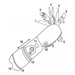 - Torche multifonction : Led avant + Led latérale + Coupe-ceinture + Brise-verre + Couteau polyvalent