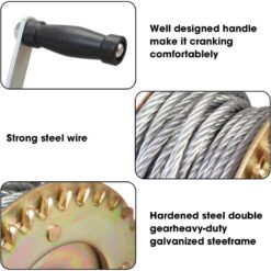 - Système de manivelle ergonomique : La manivelle est conçue pour une prise en main confortable, permettant un levage ou un tirage facile et précis. La roue tourne en douceur, réduisant la fatigue lors d’utilisations prolongées.