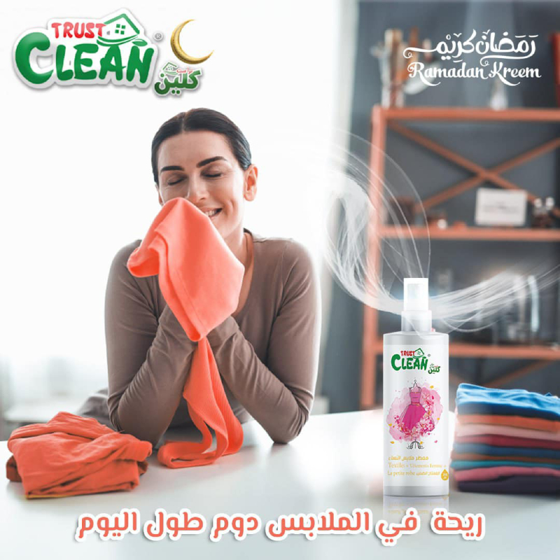 Le Trust Clean Désodorisant 200 ml offre une variété de parfums pour rafraîchir votre intérieur, voiture ou vêtements : petite robe noire (vêtements femme), black suit (vêtements homme), voiture azocar. Facile à vaporiser, il élimine les odeurs et diffuse un parfum agréable et durable.